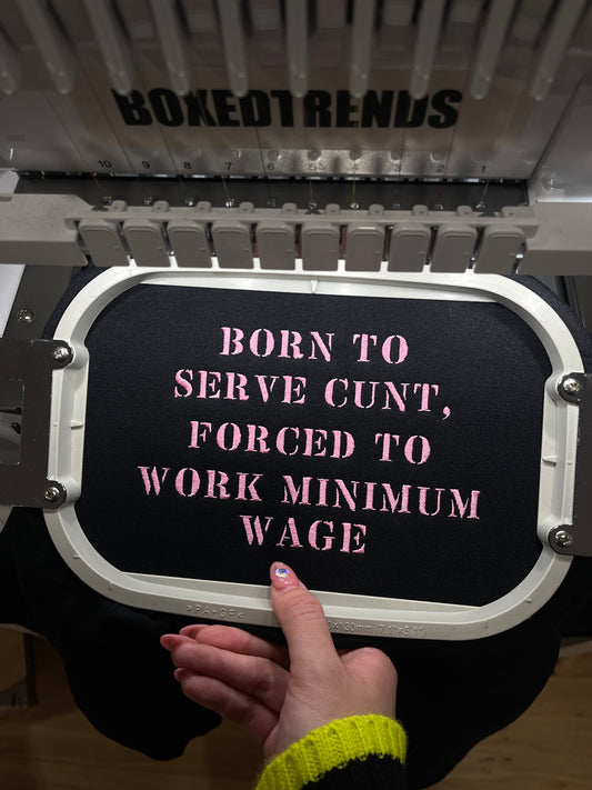 Born to Serve, Forced to Work Embroidery