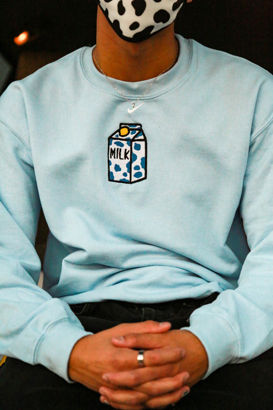 Blue Milk Embroidered Blue Sweatshirt