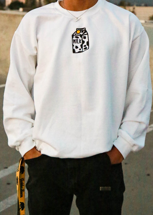 Strawberry Milk Embroidered White Sweatshirt