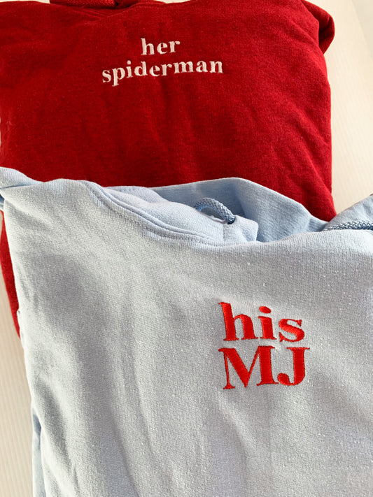 "her Spiderman" "his MJ" Embroidered Matching Set