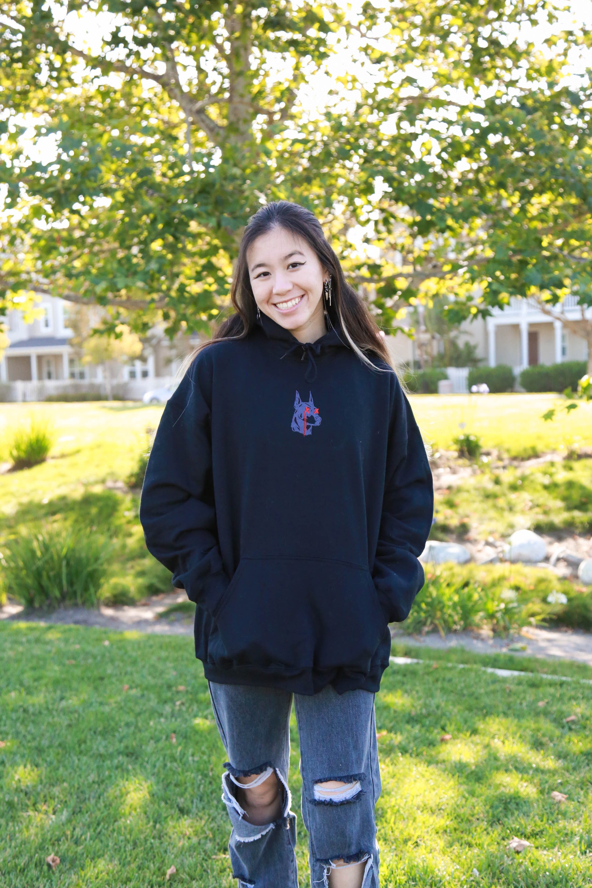 ✰Model is 5'5 and wearing Size XL in a Black Hoodie w Grey Thread (The grey thread is interchangeable, but the red will remain)