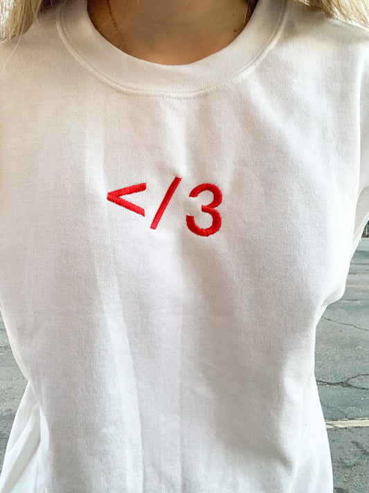 Broken Heart </3 White Embroidered Singular Sweatshirt