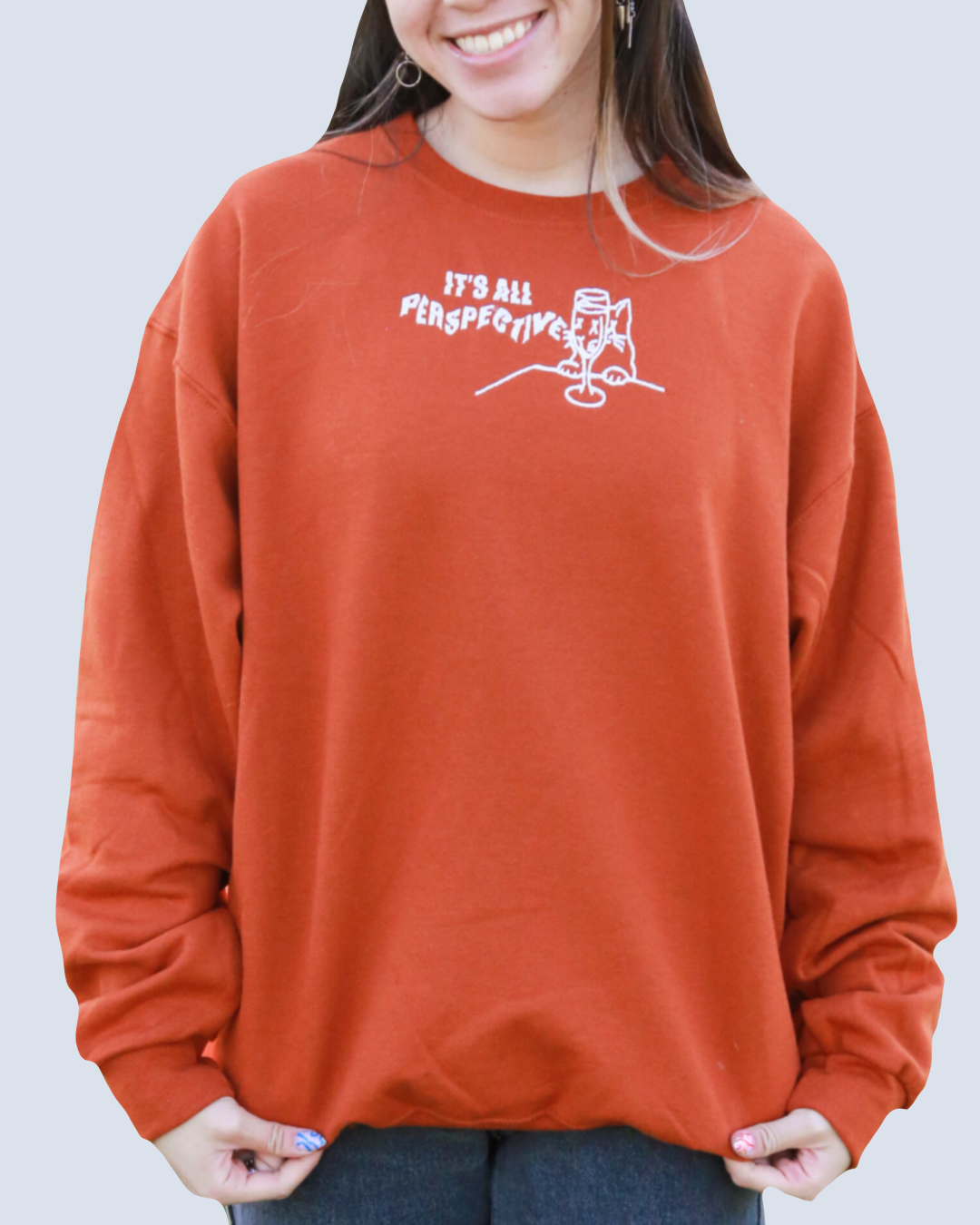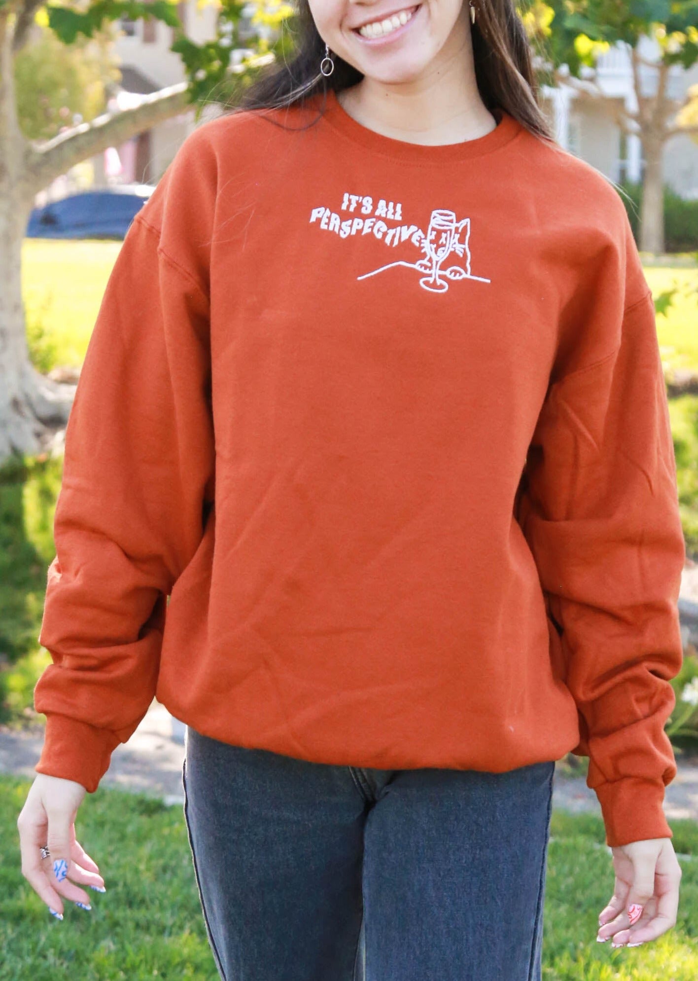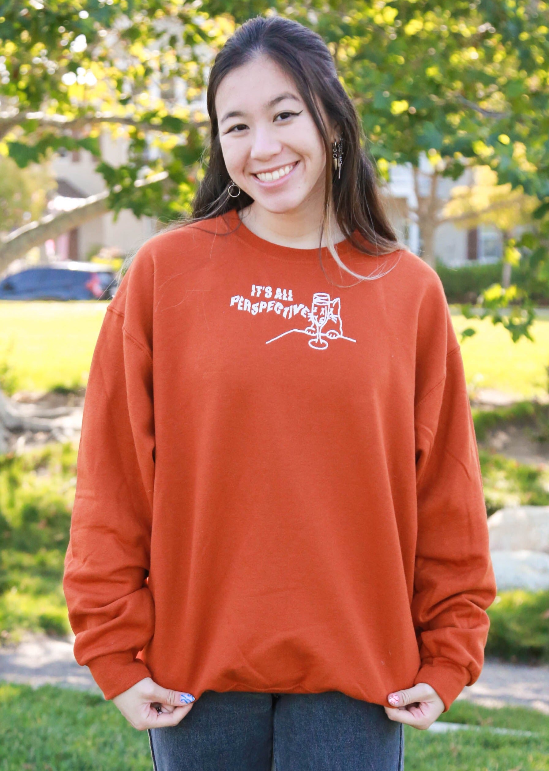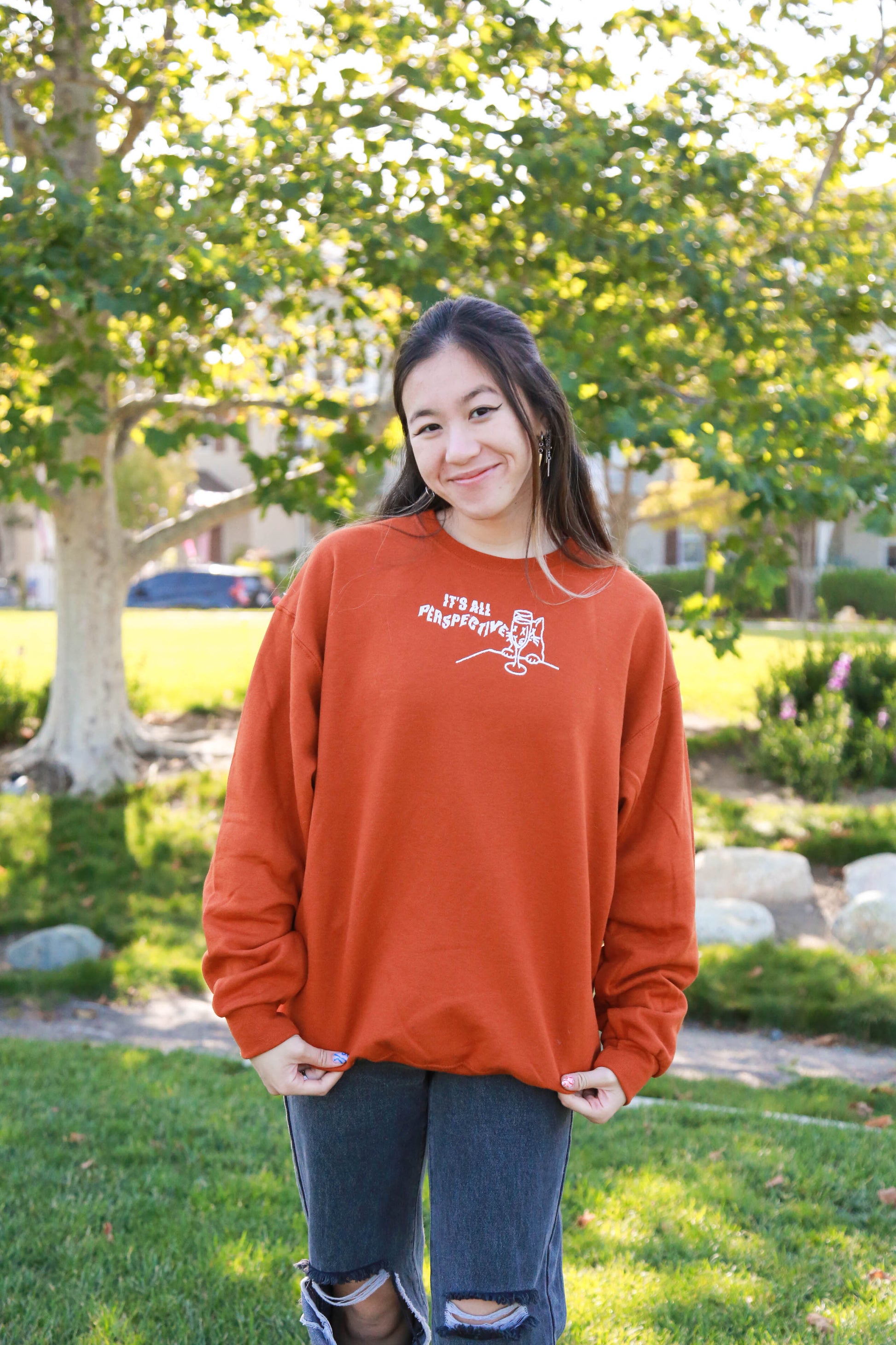 ✰Model is 5'5 and wearing Size L in a Rust Sweatshirt w White Thread