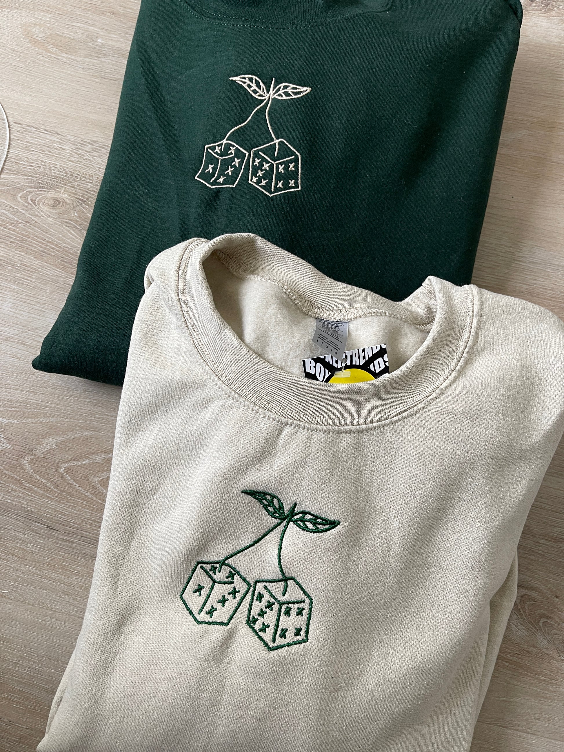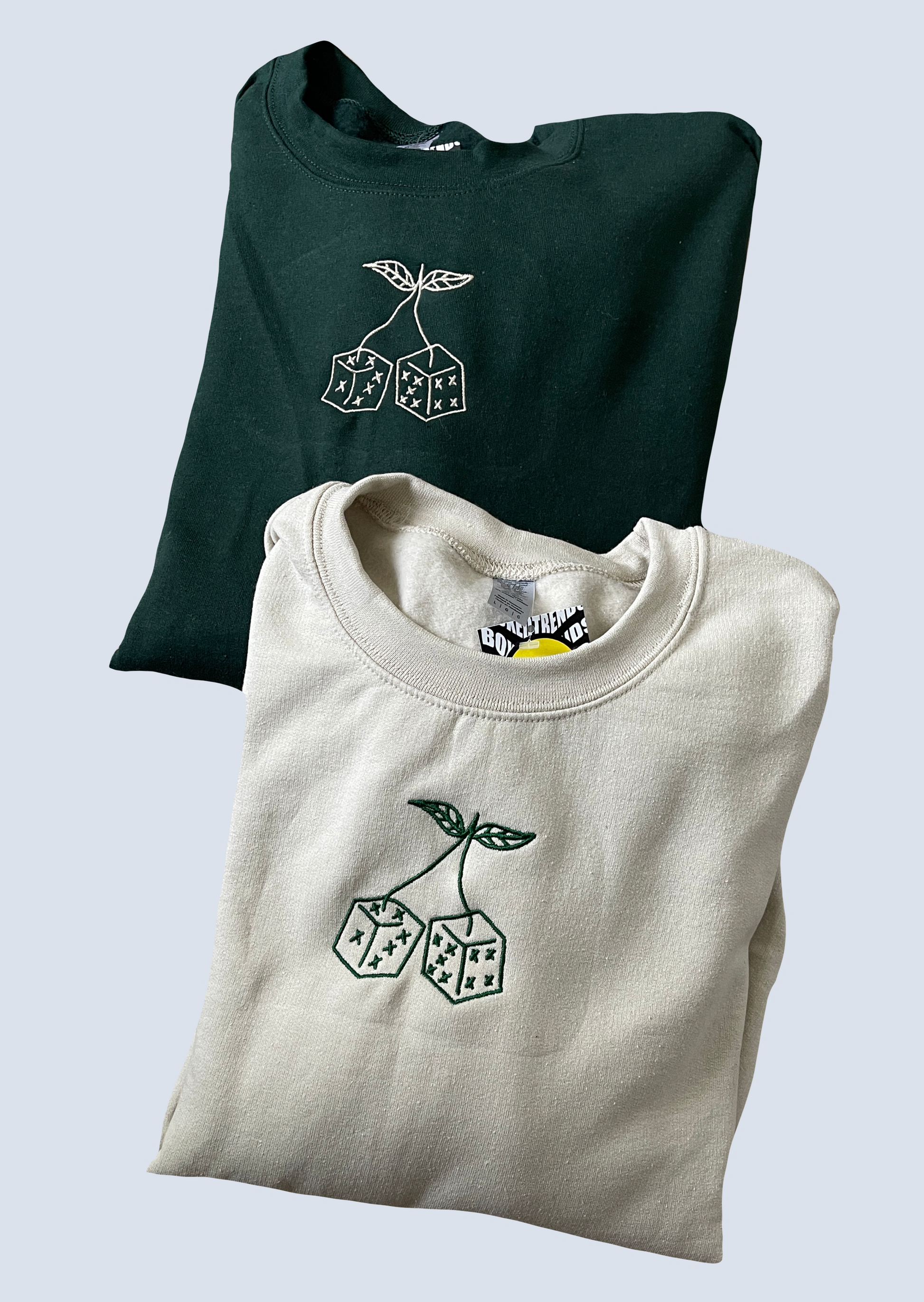 Photo features: Forest Green Sweatshirt X Tan Thread // Tan Sweatshirt X Green Thread