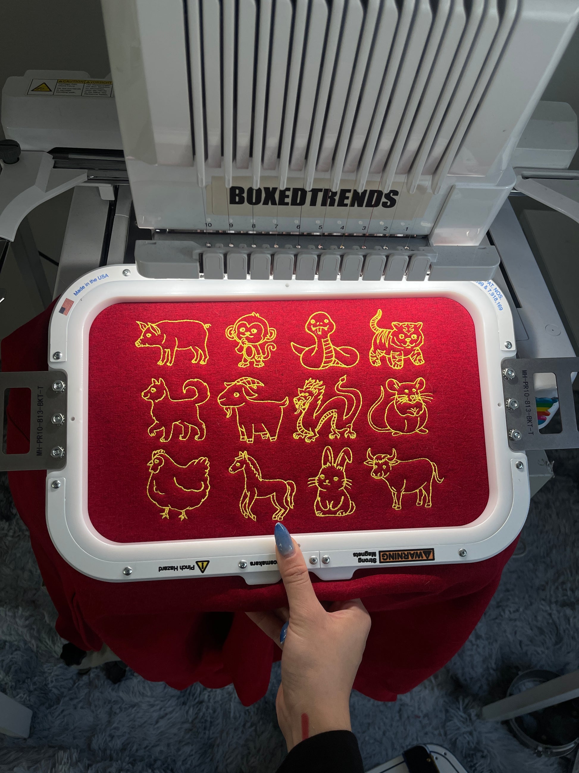 Lunar New Year 12 Chinese Zodiac Animal Sweatshirt Hoodie Custom Embroidery