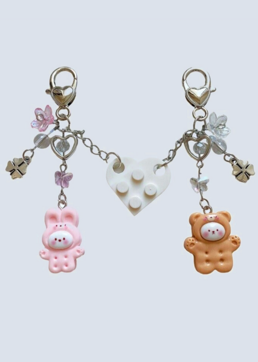 Matching Finger Heart Hands Stick Figure Silver Keychains